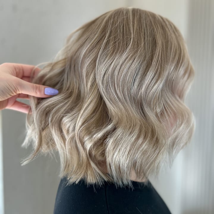 Raidat, niskahiukset leukalinjan yläpuolella. Hintaan sisältyy sävytys. Valitse hiustenleikkaus lisäpalveluista!